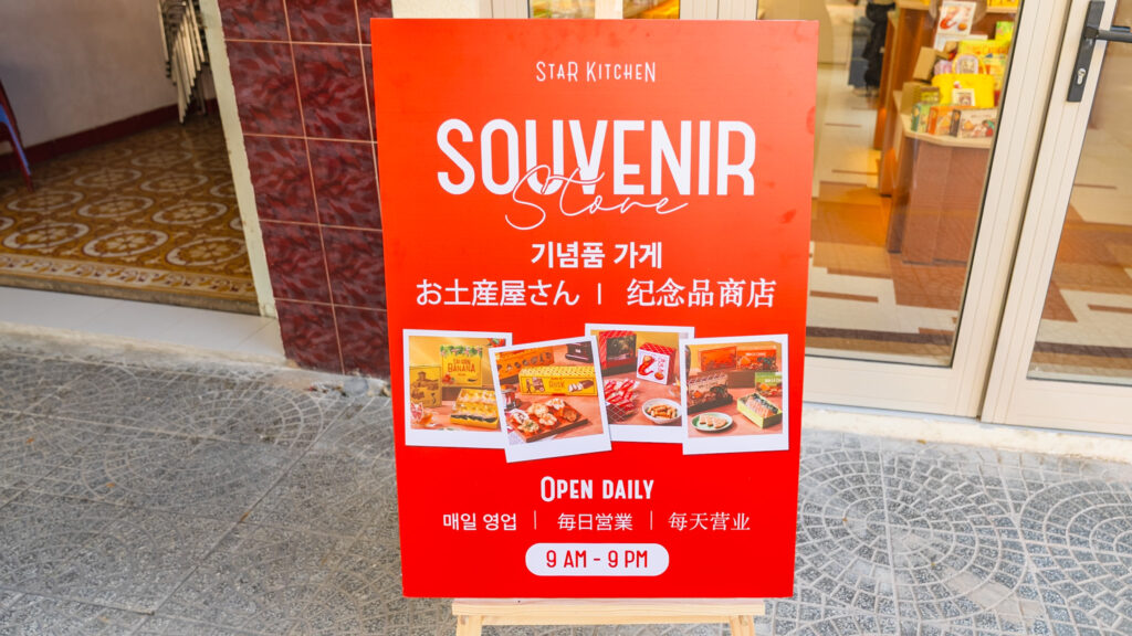 全商品試食可能、日本語表記あり、プロモーションも豊富(60万vnd〔約3,610円〕以上の購入でラスク1箱無料)で、日本人旅行者にも選びやすいのが特長です。2013年の創業以来培ってきた信頼と、2025年にオープンした新店の清潔感ある店内で、会社用・家族用も失敗しにくいお土産が揃います。ダナン旅行のお土産選びに迷ったら、スターキッチンでまとめて選ぶのが安心です。