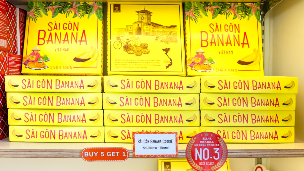 また、「サイゴンバナナクッキー:22万vnd(約1,325円)」も個包装で配りやすく、南国ムードのあるパッケージが特徴です。