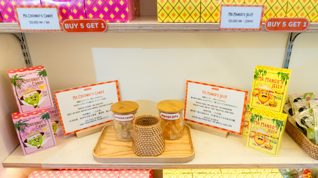 同ブランドの商品は、ベトナム特産品や日常風景をモチーフにしながら、日本人の味覚や感性に合うよう丁寧に作られています。かわいさだけでなく、きちんとベトナムらしさが伝わることを大切にしたギフト設計が特徴です。