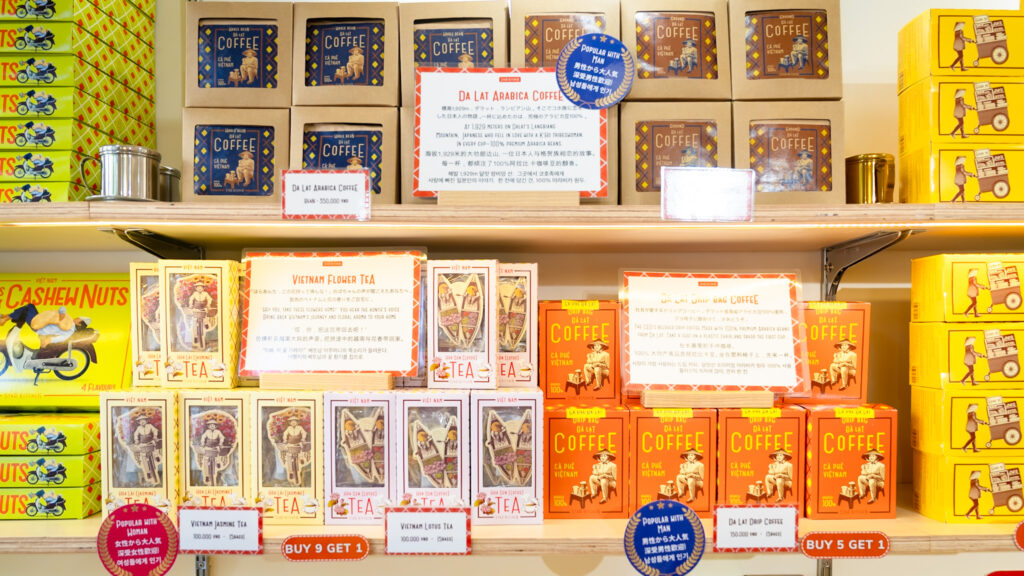 また、自分用や落ち着いた贈り物としては、「ダラットドリップコーヒー」や「フラワーティー」が選ばれており、用途に応じて価格帯を選びやすいラインナップになっています。すべて常温保存・個包装の商品が中心なので、持ち帰りやすさも魅力です。