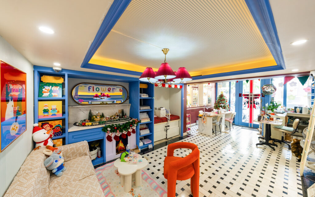 白・ピンク・青などポップなカラーの可愛い店内は、どこを切り取っても写真映え間違いなし。ネイル後に写真をたくさん撮りたくなるような空間です。看板猫ちゃんもいて、リラックスしながら施術を受けられました。