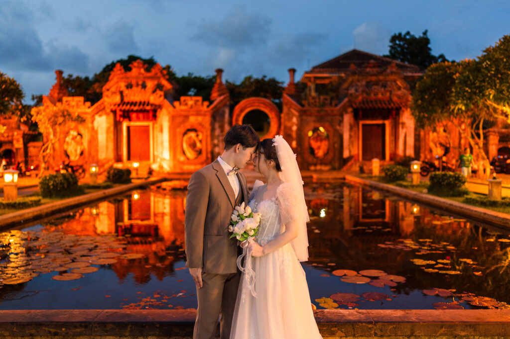 ベトナムのダナンとホイアンは、コストパフォーマンス重視のカップルから高い支持を集める注目エリアです。約7kmにわたって続く「ミーケービーチ」では、朝日やサンセットを背景にした開放感あふれるビーチフォトが叶います。「五行山(マーブルマウンテン)」では、洞窟や仏像を背景にした神秘的でドラマチックな撮影も可能です。