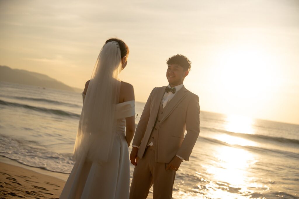 ダナンの朝焼けは、海と空がゆっくりと黄金色に染まる、思わず息をのむ美しさ。観光客が少ない静かな時間帯に撮影できるのも魅力で、旅の思い出はもちろん、フォトウェディングにもぴったりです。
