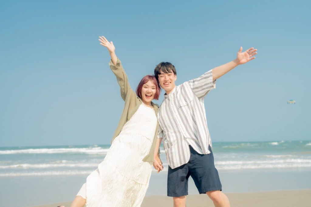 また、広い砂浜を活かして海に向かって歩くショットを撮ると、映画のワンシーンのような写真が撮れます。手元に寄ったショットも、SNS映えすると人気です。