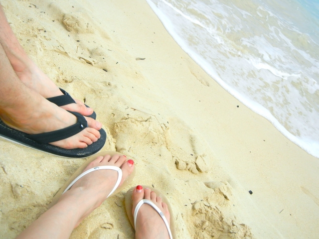 その点、サンダルであれば脱ぎ履きがしやすく、砂が入ってもすぐに落とせるため移動がとても楽です。特にフラットタイプやビーチサンダルは、早朝の薄暗い時間帯でも歩きやすく安心。靴を脱いで裸足で撮影したい場合もスムーズなので、現地ではサンダルを1足用意しておくのがおすすめです。