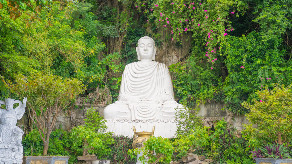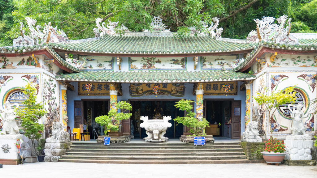 五行山のリンウン寺は18世紀に建立されたと伝えられ、阮王朝の時代から修行や祈りの場として大切にされてきました。山の高台に建つため、境内からは周囲の山や海を見渡すことができ、歴史ある佇まいとダナンの街並みを一望できるパワースポットです。