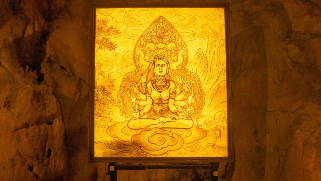 ふもとには別料金で入場できる「アンフー洞窟(Âm Phủ Cave)」があり、料金は2万vnd(約130円)。ここは、ダナン最大級の洞窟といわれ、地獄と天国をテーマにした仏教の世界観が広がっています。