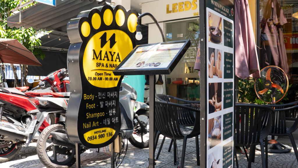 ダナン観光の合間に、癒しとおしゃれを同時に叶えられるのが「Maya Spa & Nail」。黄色い外観が目を引くこのサロンでは、スパとネイルを一度に楽しむことができます。