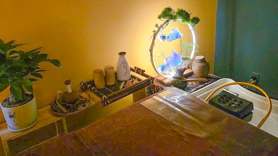 施術が始まると、柔らかな照明に包まれた落ち着いた個室に案内されます。着替えを済ませると、「フットマッサージ→オイルマッサージ→ホットストーン」という順番で進んでいきます。