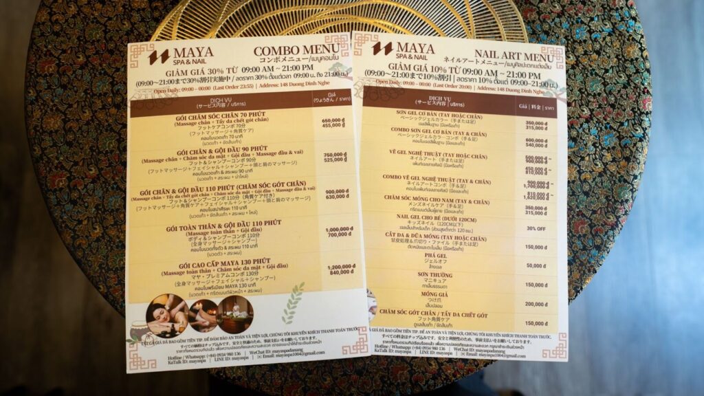 ダナン中心部からGrabで約5分、アンハイバックエリアにある「Maya Spa & Nail」では、日本の半額以下の価格で、本格的なベトナム式マッサージと多彩なデザインのネイルを楽しめます。