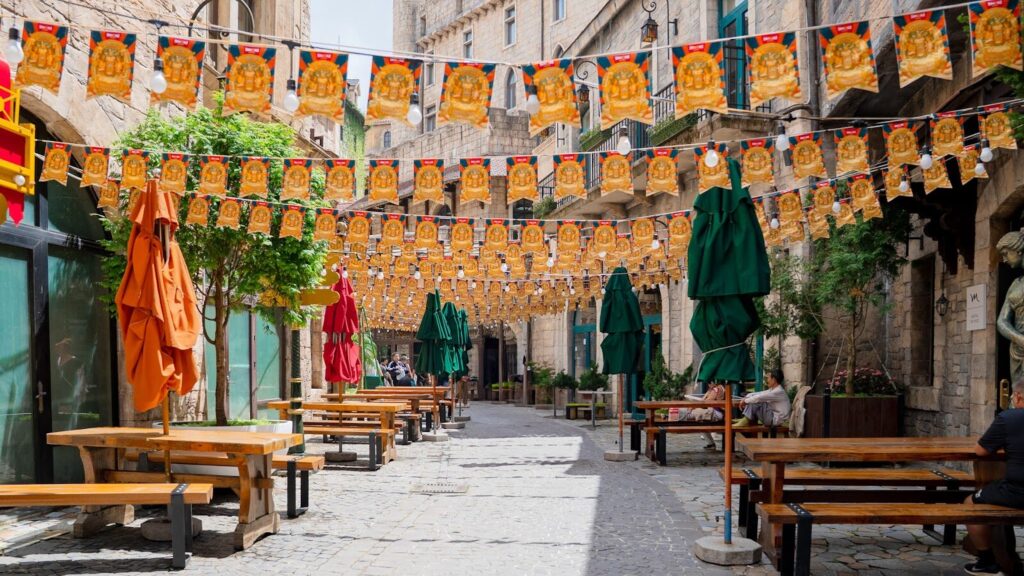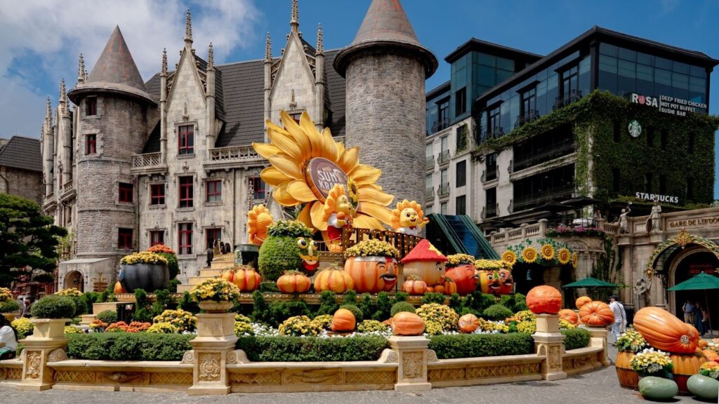 ゴールデンブリッジのあとは、またケーブルカーに乗ってヨーロッパの街並みを再現した「フランス村」へ移動。石畳の道やゴシック風の建物が立ち並び、本当にヨーロッパに来たような気分になります。広場では音楽やダンスのショーもあり、とても華やか。写真映えスポットも多く、どこを切り取っても絵になる景色でした。