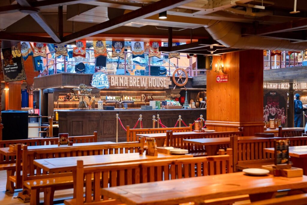 まず訪れたのは「バナ・ブリューハウス(Bana Brew House)」。フランス村内にあるベトナム初の山頂クラフトビール醸造所で、ここではドイツ式の伝統的な醸造技術を用いたクラフトビールを楽しむことができます。