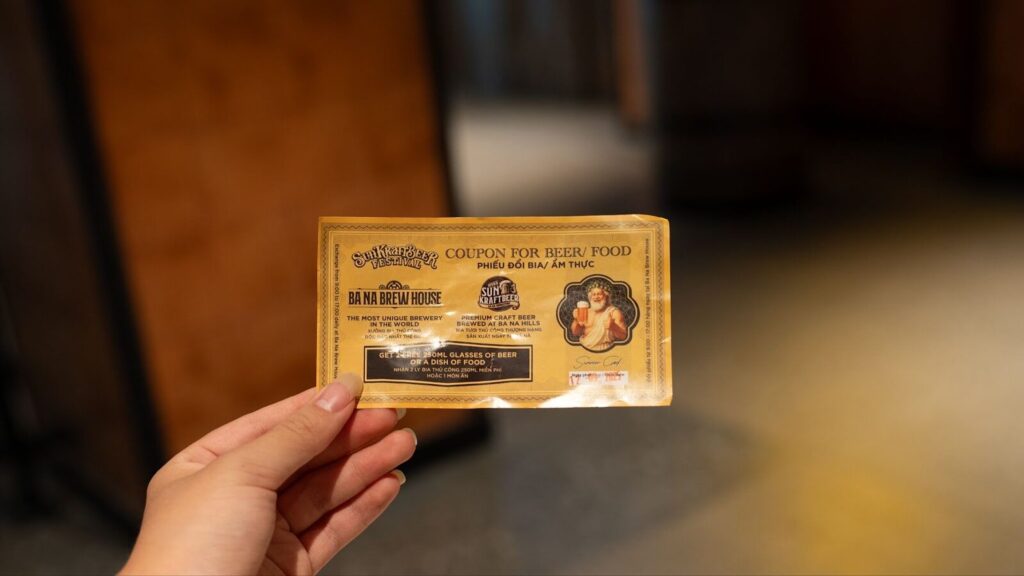 バナヒルズ入場のときにもらった試飲クーポンを「Bana Brew House」で渡して、出来立てのクラフトビールを1杯いただきました。山頂で飲む冷たいビールは格別で、ブリューハウスではライブミュージックなども行われており散策の合間に最高のリフレッシュができます。