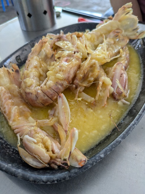 重さを計ってもらうというスタイルです。普通にエビが美味しかった。