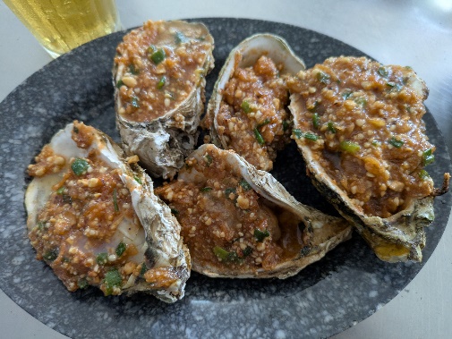 お目当てのシャコはプリプリで、岩ガキのピーナツソースも