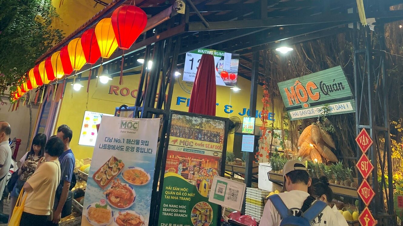 ダナンで海鮮を食べるなら外せないMOC SEAFOODにも行きました。ロブスターや車海老など、目の前で調理してもらえる新鮮な海鮮を堪能しました。