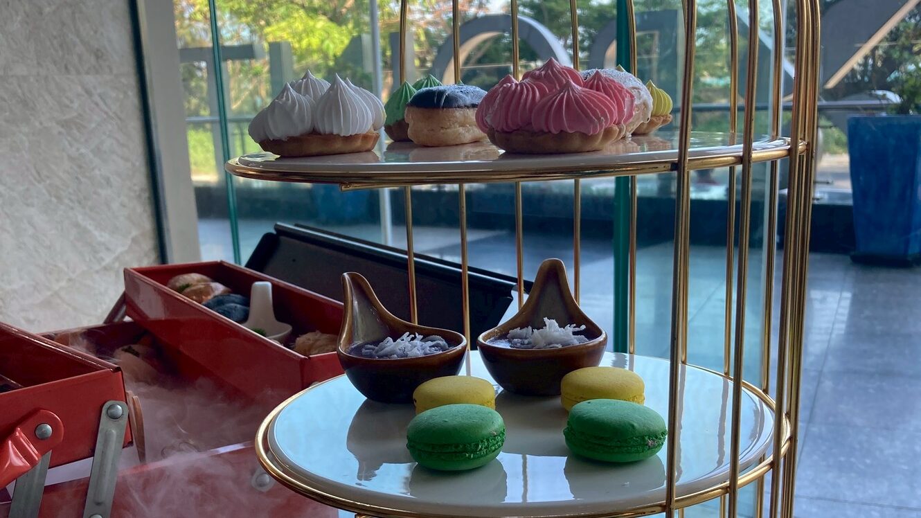 Four Points by Sheratonでアフタヌーンティーを体験しました。3段のスタンドにセイボリーとスイーツが並ぶ、華やかなアフタヌーンティーです。