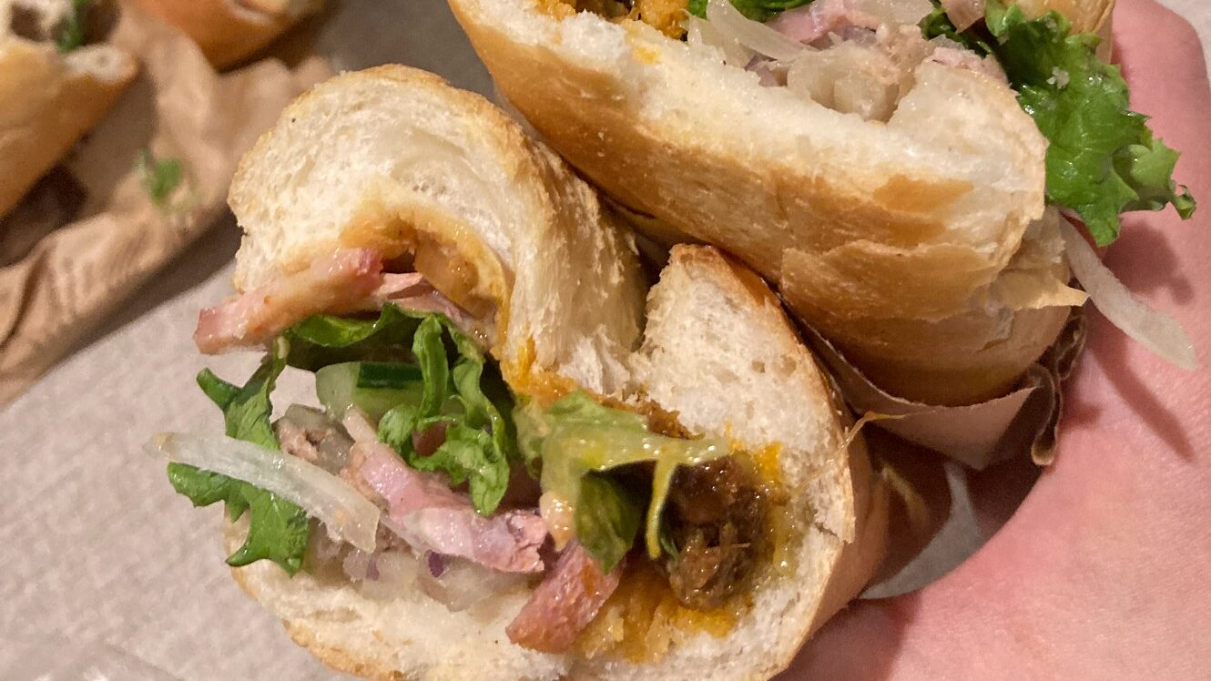バインミーを2種類テイクアウトしてホテルで夜に食べました。両方とも味が違って美味しかったです。