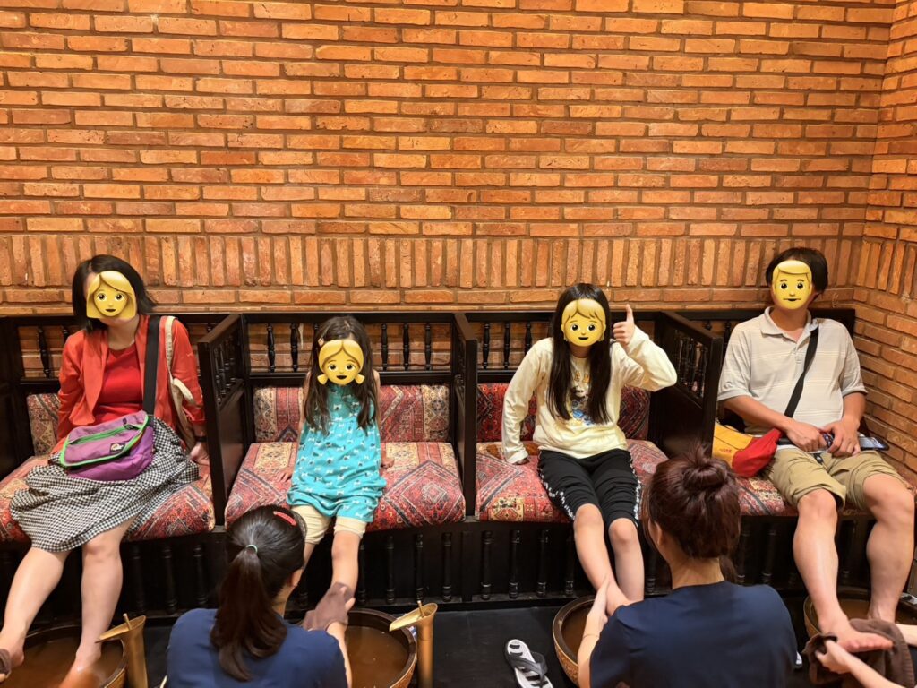 呼び込みのお店でも「子ども大丈夫ですか?」と聞けばほぼOKと言われますが、ホームページで子どもメニューが明示されているお店の方が安心です。同じ部屋で家族一緒に受けられる環境かどうかも、事前に確認しておくと良いでしょう。